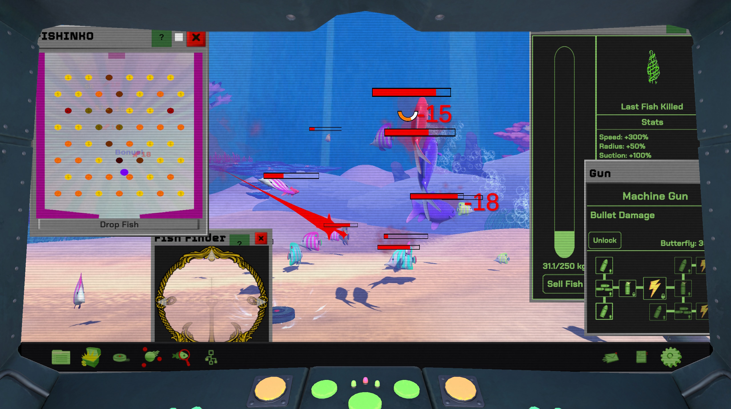 Gameplay of the Fishinko minigame in action, rewarding money and damaging fish!