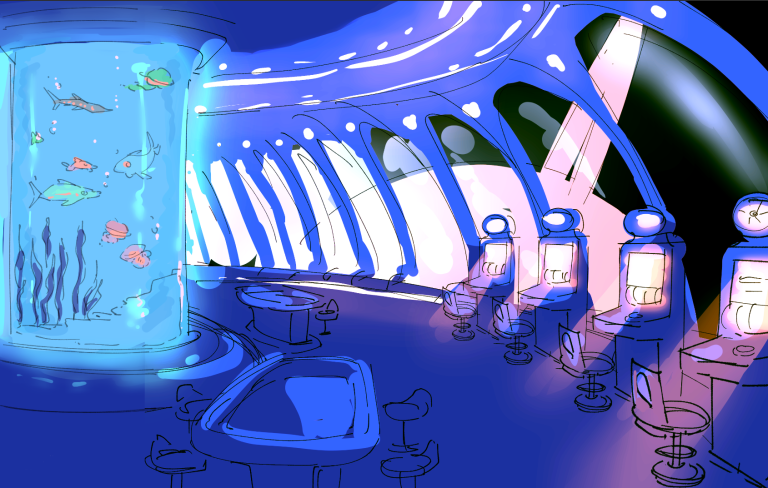 Concept art for the early sci-fi casino version of Fincremental OS, courtesy of Alanna Nguyen-Kenney.